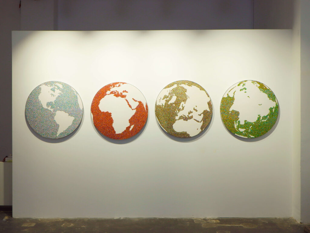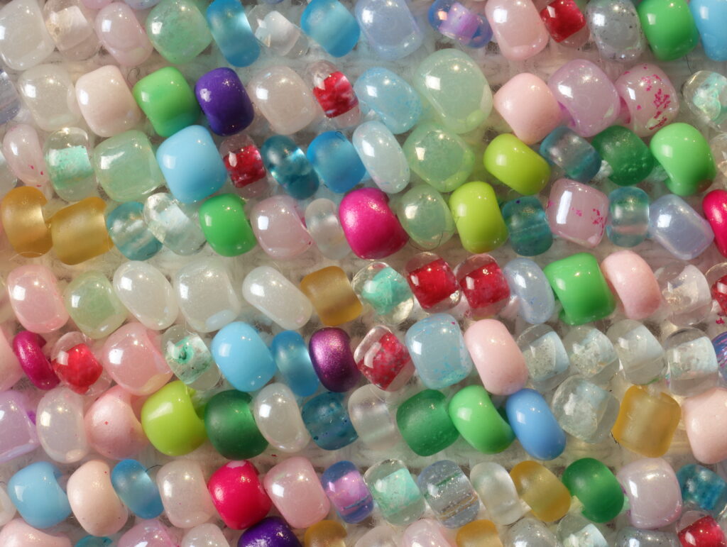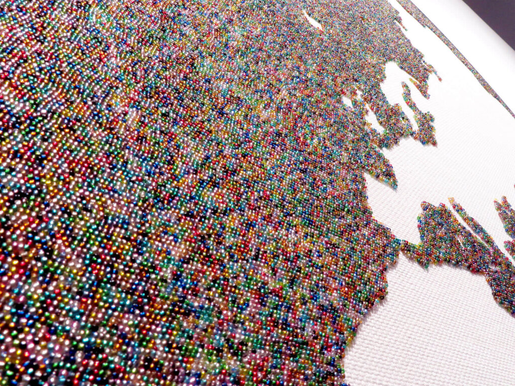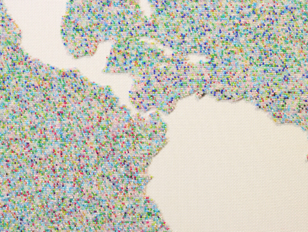 Plastic Sea series, Hand-sewn plastic beads on canvas, 2019 – 2020