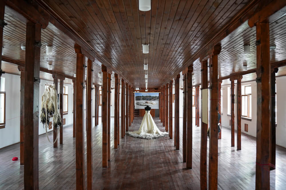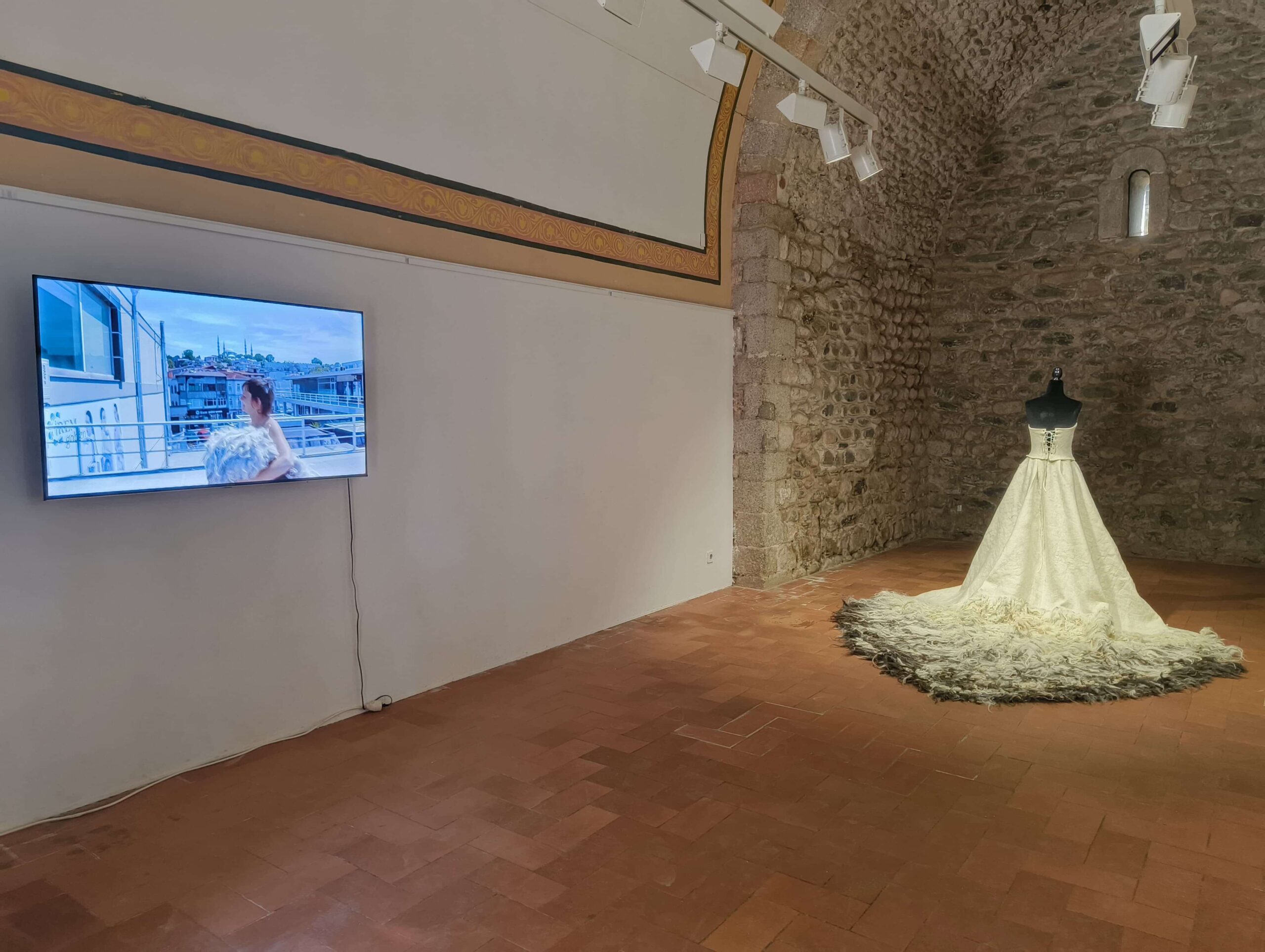 Photos of the exhibition The Bride, the Maid and the Madwoman – Part 1: The Bride at the Chapel of Sant Corneli, Tomàs Balvey Archive Museum, Barcelona. Curated by Mercè Alsina and Enric Maurí