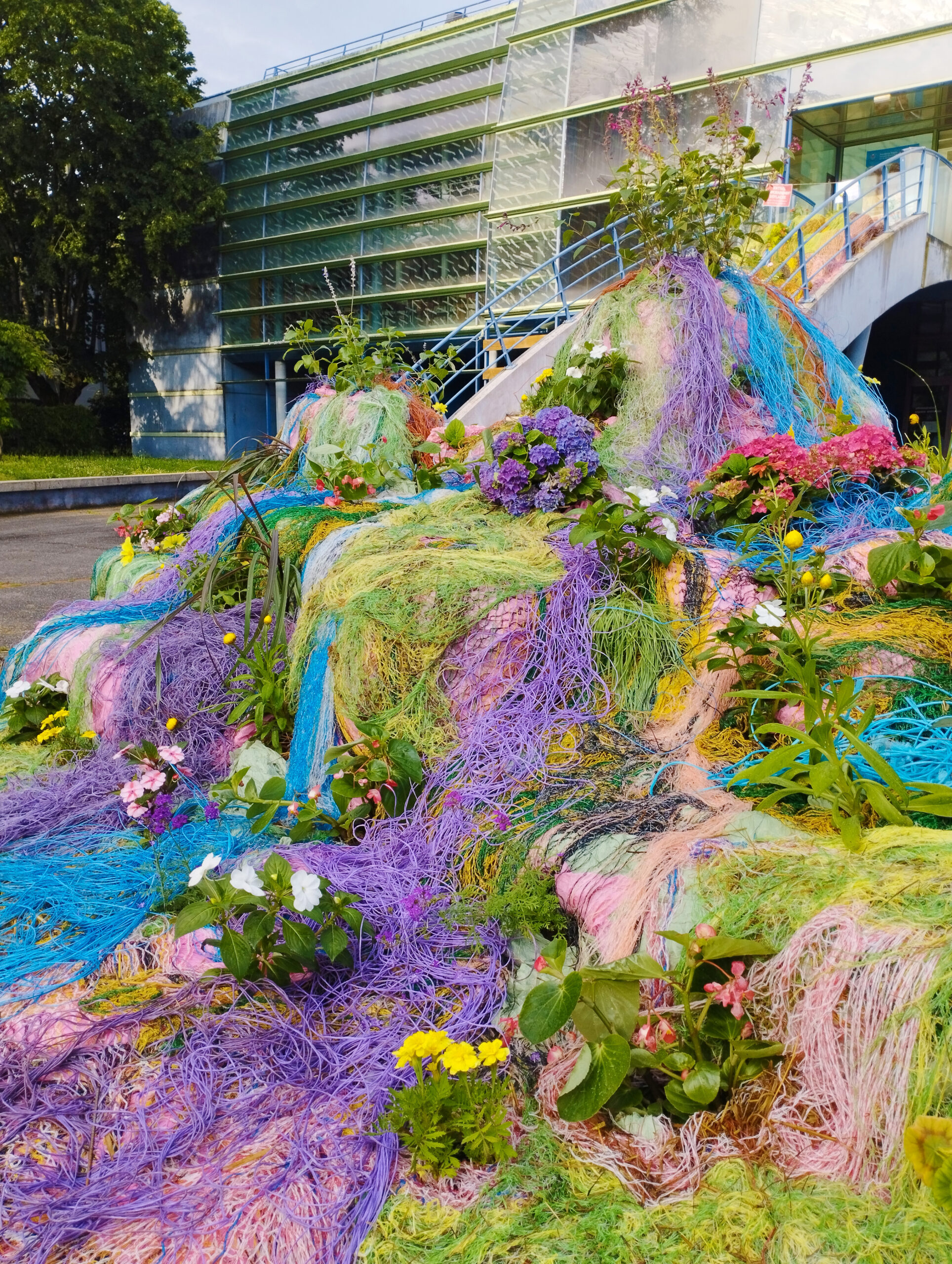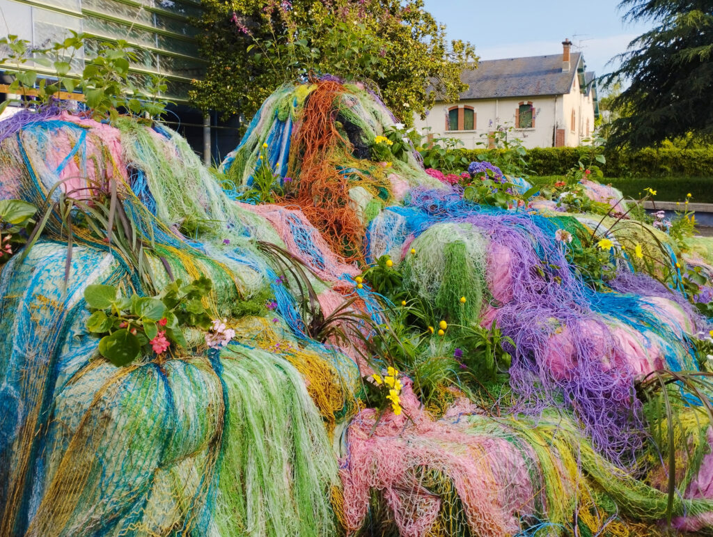 In parallel, Rey developed Crazy Garden with students from Léon Gambetta Middle School. This participatory project extends the same reflection, inviting the students to create hybrid compositions that mix natural and artificial elements. Using found objects, homemade flowers and living plants, the students explored questions of pollution, creativity and the collective imagination of landscape.The entire process was made possible thanks to the collaboration of the Cahors greenhouses and Gamm Vert, who assisted in selecting and growing flowers and organized gardening workshops for the children. This network of exchange, learning and generosity grounds the work in a communal dynamic, where creation becomes a shared gesture of care and reinvention of the living.
