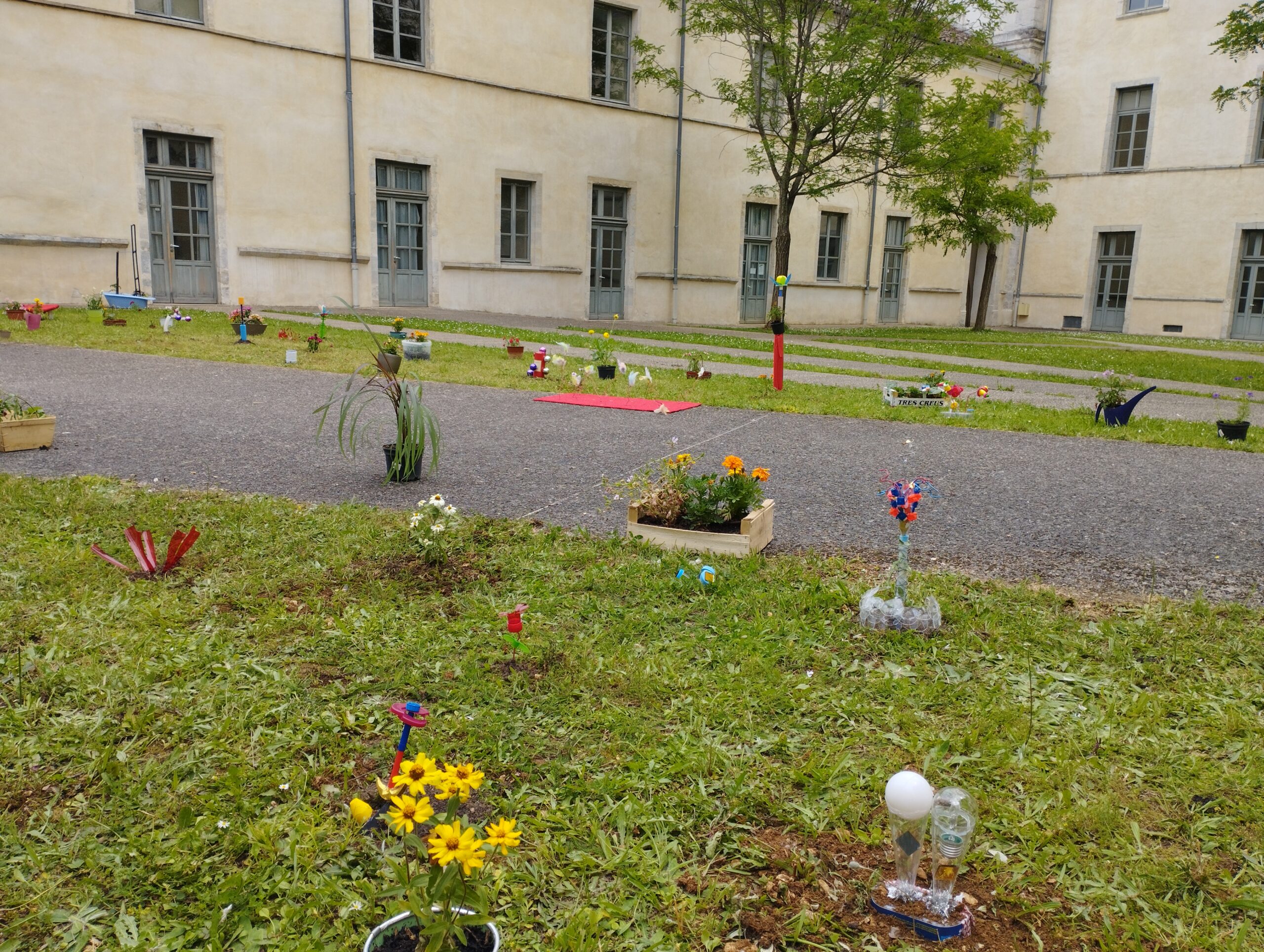 Installation of the Crazy Garden in one of the courtyards of the Léon Gambetta Middle School