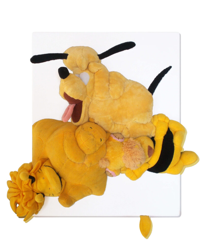 Nathalie Rey has worked during many years with stuffed animals. These seemingly innocent, mass-produced objects have become the raw material of a practice that reflects on the contradictions of contemporary society — its violence disguised as sweetness, its nostalgia intertwined with consumerism, its longing for comfort coupled with existential anxiety.