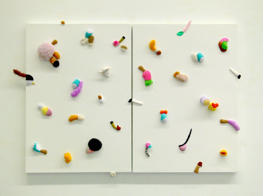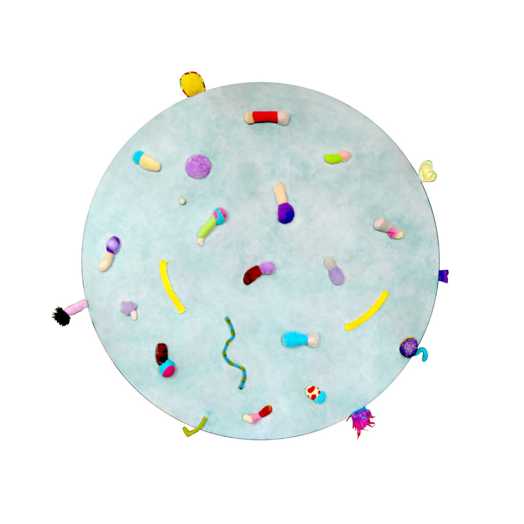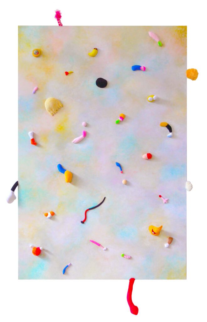 Inspired by the Japanese kaiju — creatures born from the trauma of Hiroshima and Nagasaki — these works translate today’s hidden threats into tactile, colorful, and ambiguous shapes. Like the kaiju, they conjure fear through fantasy, turning it into something visible, tangible, and almost affectionate.
