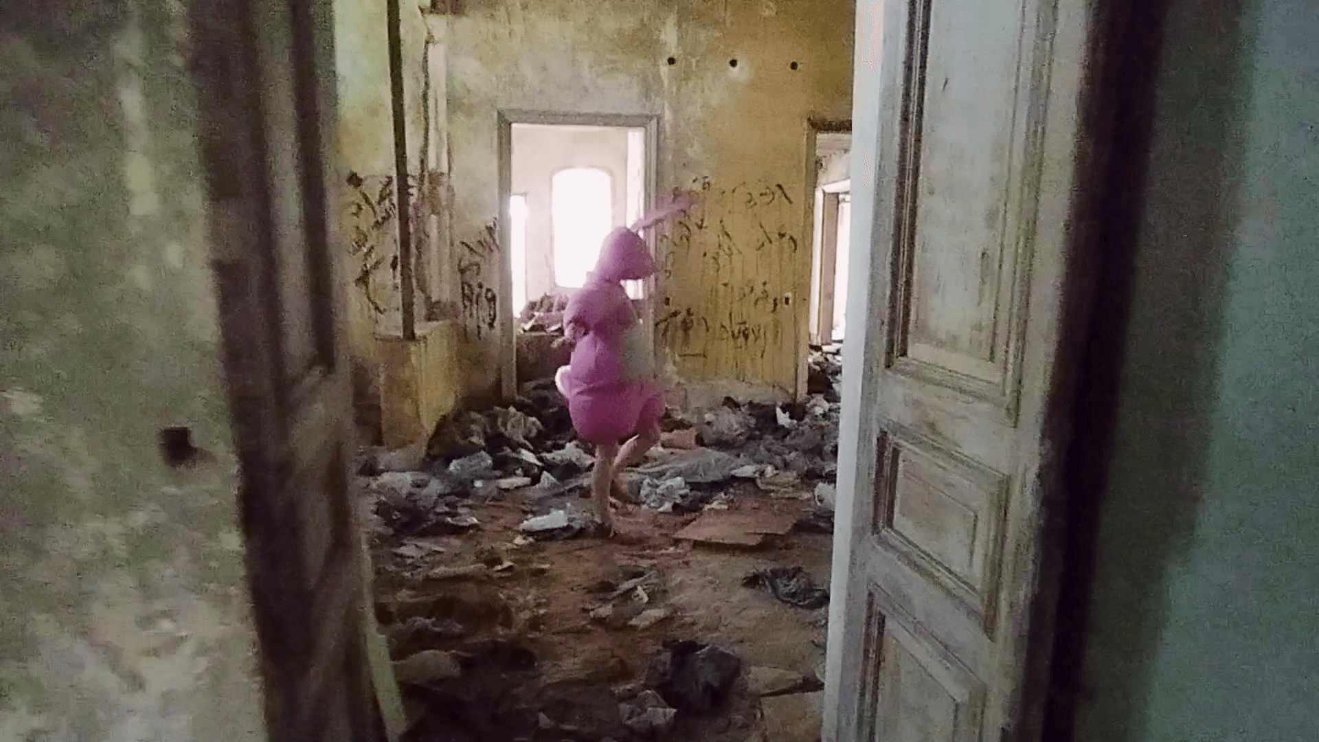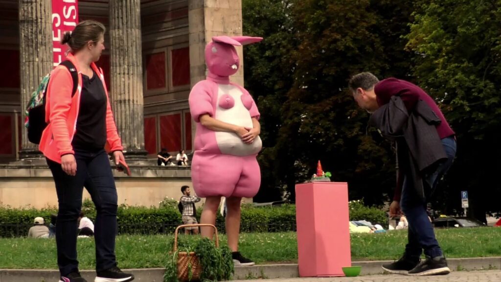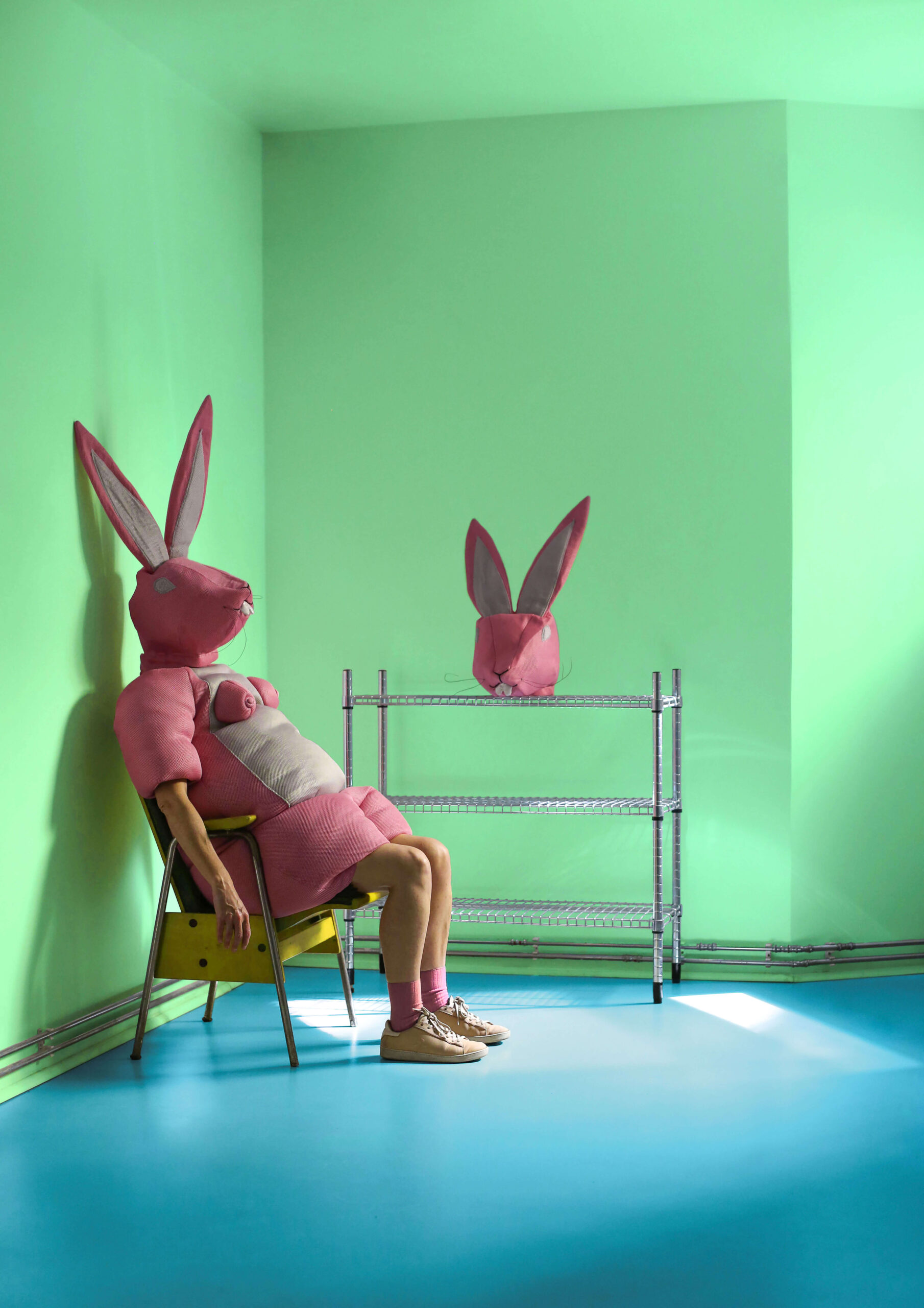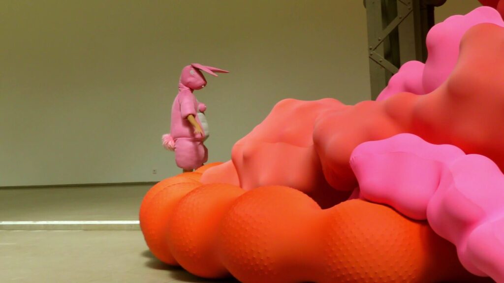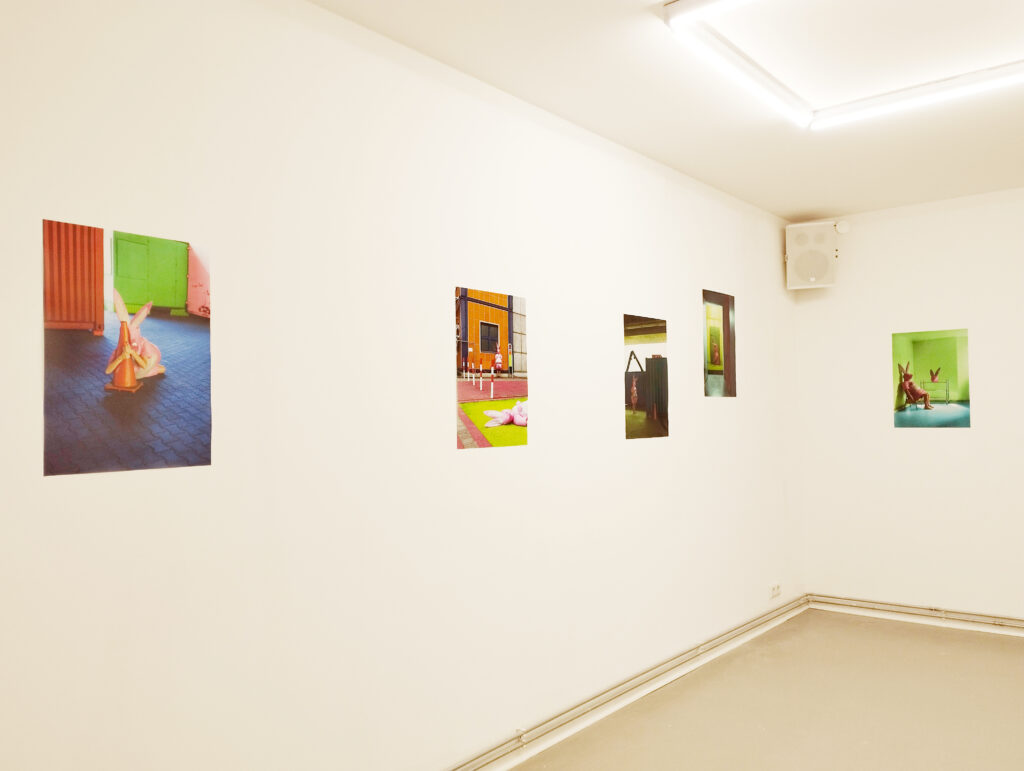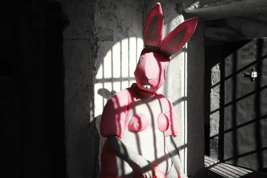 Rabbits is an evolving project built around Pink Bunny — a pink, half-human, half-plush character created during Nathalie Rey’s 2023 residency at Scope (Berlin). Through this figure, she examines desire, vulnerability, and the erosion of the boundary between reality and its proliferating simulations in a world increasingly mediated by images, screens, and virtual practices.